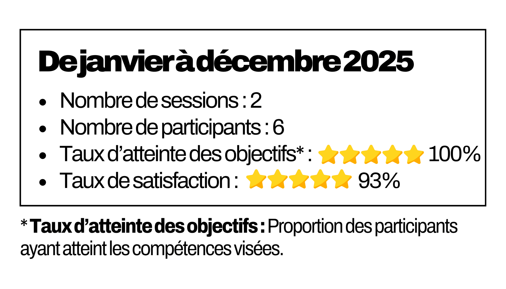 Une évaluation de satisfaction et un certificat de praticien vous seront remis à la fin de votre certification.
